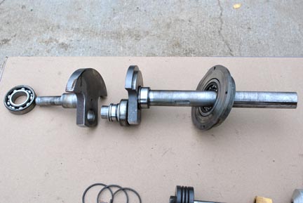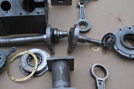 The output end of the crankshaft runs in a single row ball race sealed on one side that is fitted into the case from the outside.